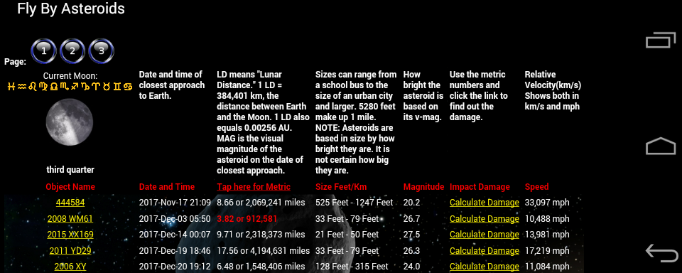 Internal Purposes Only for Email Alerting of Potentially Hazardous Asteroids.